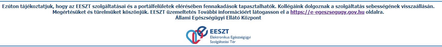 Megértésüket és türelmüket köszönjük. EESZT üzemeltetés További információért látogasson el a https://e-egeszsegugy.gov.hu oldalra.