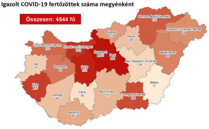 9 újabb magyar állampolgárnál mutatták ki az új koronavírus-fertőzést (COVID-19), ezzel 4544 főre nőtt a hazánkban beazonosított fertőzöttek száma. Az elhunytak száma változatlanul 597 fő, 3413-an pedig már meggyógyultak. Az aktív fertőzöttek száma 534 fő. Az aktív fertőzöttek 36%-a, az elhunytak 60%-a, a gyógyultak 44%-a budapesti. 74 koronavírusos beteget ápolnak kórházban, közülük 7-en vannak lélegeztetőgépen.