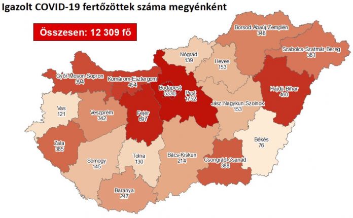 484 újabb magyar állampolgárnál mutatták ki az új koronavírus-fertőzést (COVID-19), ezzel 12 309 főre nőtt a hazánkban beazonosított fertőzöttek száma. Elhunyt négy krónikus beteg, így az elhunytak száma 637 fő, 4069-en pedig már meggyógyultak. Az aktív fertőzöttek száma 7603 fő. Az aktív fertőzöttek 43%-a, az elhunytak 58%-a, a gyógyultak 42%-a budapesti. 282 koronavírusos beteget ápolnak kórházban, közülük 16-an vannak lélegeztetőgépen.