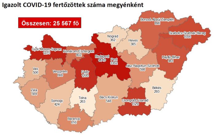 851 újabb magyar állampolgárnál mutatták ki az új koronavírus-fertőzést (COVID-19), ezzel 25 567 főre nőtt a hazánkban beazonosított fertőzöttek száma. Elhunyt 8 beteg, így az elhunytak száma 757 főre emelkedett, 5173-an pedig már meggyógyultak. Az aktív fertőzöttek száma 19 637 fő. Az aktív fertőzöttek 37%-a, az elhunytak 54%-a, a gyógyultak 39%-a budapesti. 755 koronavírusos beteget ápolnak kórházban, közülük 51-en vannak lélegeztetőgépen.