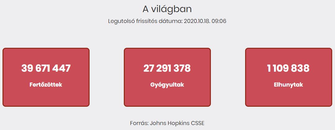 1474 fővel emelkedett a beazonosított fertőzöttek száma és elhunyt 33 idős, krónikus beteg 2020. október 18. – 09:06 koronavirus.gov.hu