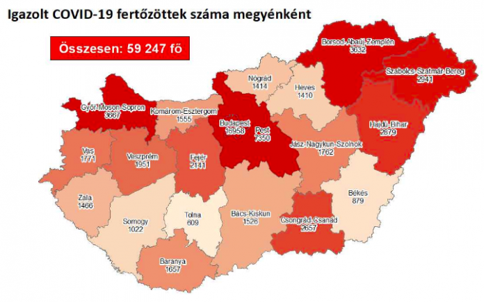 3149 újabb magyar állampolgárnál mutatták ki az új koronavírus-fertőzést (COVID-19), ezzel 59 247 főre nőtt a hazánkban beazonosított fertőzöttek száma. Elhunyt 35 többségében idős, krónikus beteg, így az elhunytak száma 1425 főre emelkedett, 16 242 -en pedig már meggyógyultak. Az aktív fertőzöttek száma 41 580 fő. Az aktív fertőzöttek 28 %-a, az elhunytak 37%-a, a gyógyultak 29%-a budapesti. 2449 koronavírusos beteget ápolnak kórházban, közülük 221-en vannak lélegeztetőgépen.