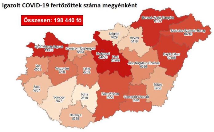 6393 újabb magyar állampolgárnál mutatták ki az új koronavírus-fertőzést (COVID-19), ezzel 198 440 főre nőtt a hazánkban beazonosított fertőzöttek száma. Elhunyt 135 többségében idős, krónikus beteg, így az elhunytak száma 4 364 főre emelkedett. A gyógyultak száma 52 126 főre emelkedett, az aktív fertőzöttek száma 141 950 fő. Az aktív fertőzöttek 21%-a, az elhunytak 24%-a, a gyógyultak 26%-a budapesti. 7591 koronavírusos beteget ápolnak kórházban, közülük 647-en vannak lélegeztetőgépen. A beazonosított fertőzöttek számában megjelennek a mentők által, a szűrőbuszokon, és a kórházi dolgozók körében gyorsteszteléssel kiszűrtek is. A bölcsődei, óvodai, iskolai és szociális dolgozók körében végzett célzott csoportos tesztelés összesített eredménye jövő hét elején várható.
