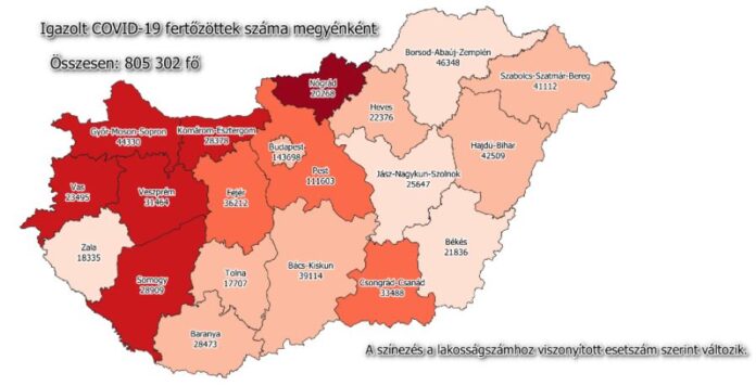 Folyamatosan zajlik az oltás, a beoltottak száma 5 227 318, közülük 3 732 252 fő már a második oltását is megkapta. 315 az új fertőzöttek száma, ezzel a járvány kezdete óta összesen 805 302 főre nőtt a beazonosított fertőzöttek száma. Elhunyt 18 többségében idős, krónikus beteg, így az elhunytak száma 29 792 főre emelkedett. A gyógyultak száma folyamatosan nő, jelenleg 708 198 fő, az aktív fertőzöttek száma pedig 67 312 főre csökkent. 739 koronavírusos beteget ápolnak kórházban, közülük 77-en vannak lélegeztetőgépen. Az oltásoknak és a védelmi intézkedéseknek köszönhetően letörtük a járvány harmadik hullámát. Magyarország továbbra is a második az uniós oltási ranglistán. A magyar lakosság 53,5%-a már megkapta az oltást, szemben az uniós 38%-os átlaggal. Magyarországon is megjelent az indiai vírusmutáns, a védőoltás felvétele ezért is fontos. Továbbra is folyamatosan lehet regisztrálni a www.vakcinainfo.gov.hu honlapon, az érvényes regisztrációval rendelkezők pedig interneten is foglalhatnak időpontot az oltásra a www.eeszt.gov.hu honlapon.