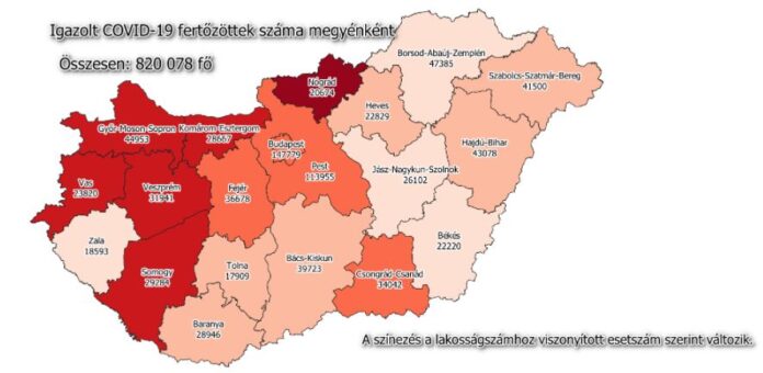 A beoltottak száma 5 873 523, közülük 5 615 273 fő már a második oltását is megkapta, 691 ezren pedig már a harmadik oltást is felvették. 531 új fertőzöttet igazoltak, ezzel a járvány kezdete óta összesen 820 078 főre nőtt a beazonosított fertőzöttek száma. Elhunyt 6 beteg, így az elhunytak száma 30 151 főre emelkedett. A gyógyultak száma folyamatosan nő, jelenleg 781 794 fő, az aktív fertőzöttek száma pedig 8 133 főre emelkedett. 438 koronavírusos beteget ápolnak kórházban, közülük 54-en vannak lélegeztetőgépen. Orbán Viktor miniszterelnök a ma reggeli rádióinterjúban felhívta a figyelmet, hogy a vírus ellen csak az oltás segít, és az oltatlanok egy súlyos betegség kockázatának vannak kitéve, ezért fontos, hogy ők is éljenek az oltás lehetőségével.