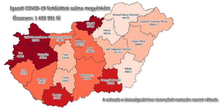 A beoltottak száma 6 379 065 fő, közülük 6 131 361 fő már a második, 3 754 698 fő pedig már a megerősítő harmadik oltását is felvette. 11 559 új fertőzöttet igazoltak, ezzel a járvány kezdete óta összesen 1 695 991 nőtt a beazonosított fertőzöttek száma. Elhunyt 91 többségében idős, krónikus beteg, így az elhunytak száma 42 360 főre emelkedett. A gyógyultak száma folyamatosan nő, jelenleg 1 423 921 fő, az aktív fertőzöttek száma pedig 229 710 fő. 5152 koronavírusos beteget ápolnak kórházban, közülük 209-en vannak lélegeztetőgépen. A regisztráció és az időpontfoglaló folyamatosan nyitva van az oltáshoz. Ma délután és szombaton ismét lesz oltási akció a kórházi oltópontokon.