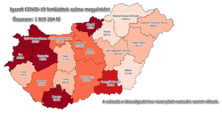 A hosszú hétvége adatait közöljük. A beoltottak száma 6 399 413 fő, közülük 6 180 406 fő a második, 3 829 875 fő a harmadik, 236 168 fő már a negyedik oltását is felvette. Múlt hét péntek óta 4902 új fertőzöttet igazoltak, ezzel a járvány kezdete óta összesen 1 819 264 főre nőtt a beazonosított fertőzöttek száma. Az elmúlt öt napban elhunyt 178 többségében idős, krónikus beteg, így az elhunytak száma 44 831 főre emelkedett. A gyógyultak száma folyamatosan nő, jelenleg 1 663 907 fő, az aktív fertőzöttek száma pedig 110 526 főre csökkent. 2259 koronavírusos beteget ápolnak kórházban, közülük 101-en vannak lélegeztetőgépen. A járvány ötödik hullámának leszálló ágában vagyunk, ezért kormány kivezette a járványügyi korlátozásokat és megszűnt a maszkviselési kötelezettség. A regisztráció és az időpontfoglaló folyamatosan nyitva van az oltáshoz. Csütörtökön, pénteken és szombaton újabb oltási akció lesz.