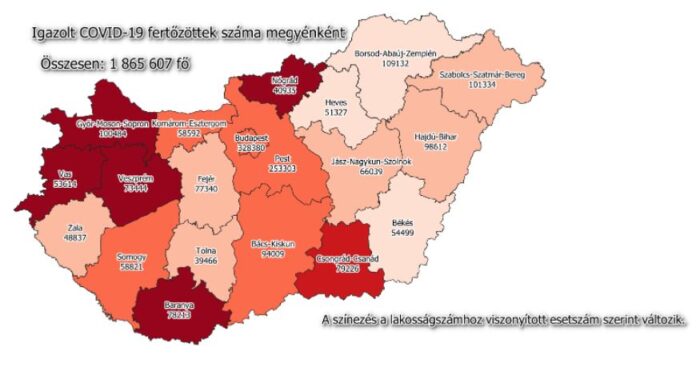 A beoltottak száma 6 403 667 fő, közülük 6 188 807 fő a második, 3 849 393 fő a harmadik, 269 465 fő már a negyedik oltását is felvette. 2568 új fertőzöttet igazoltak, ezzel a járvány kezdete óta összesen 1 865 607 főre nőtt a beazonosított fertőzöttek száma. Elhunyt 37 többségében idős, krónikus beteg, így az elhunytak száma 45 684 főre emelkedett. A gyógyultak száma folyamatosan nő, jelenleg 1 723 020 fő, az aktív fertőzöttek száma pedig 96 903 fő. 1724 koronavírusos beteget ápolnak kórházban, közülük 51-en vannak lélegeztetőgépen. A kormány továbbra is biztosítja az oltás lehetőségét.