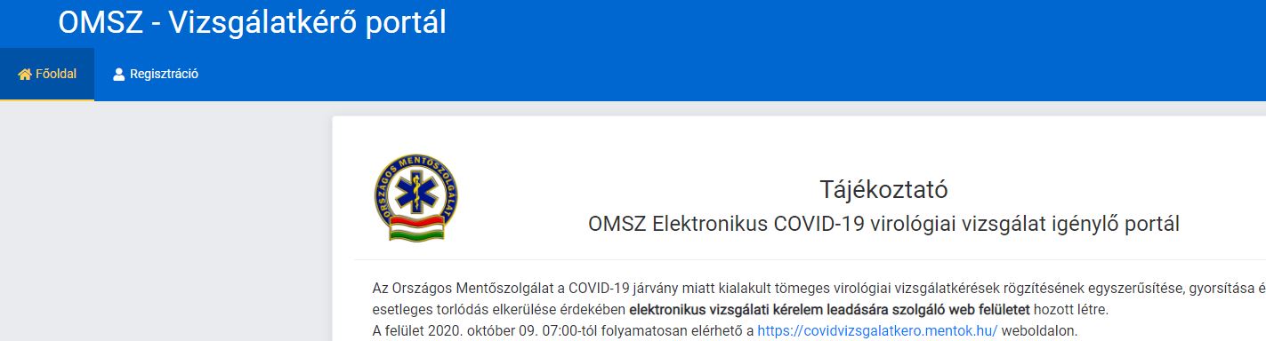 OMSZ – Vizsgálatkérő portál: https://covidvizsgalatkero.mentok.hu/