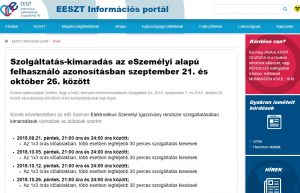 Ennek következtében az eID Szerver Elektronikus Személyi Igazolvány rendszer szolgáltatásában kimaradások várhatóak az alábbiak szerint: